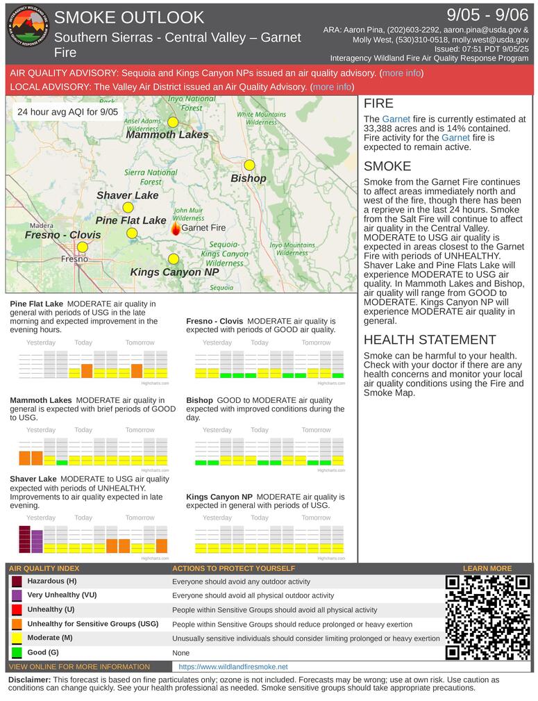 Friday 9-5-2025 Smoke Outlook: Southern Sierras & Central Valley - Garnet Fire